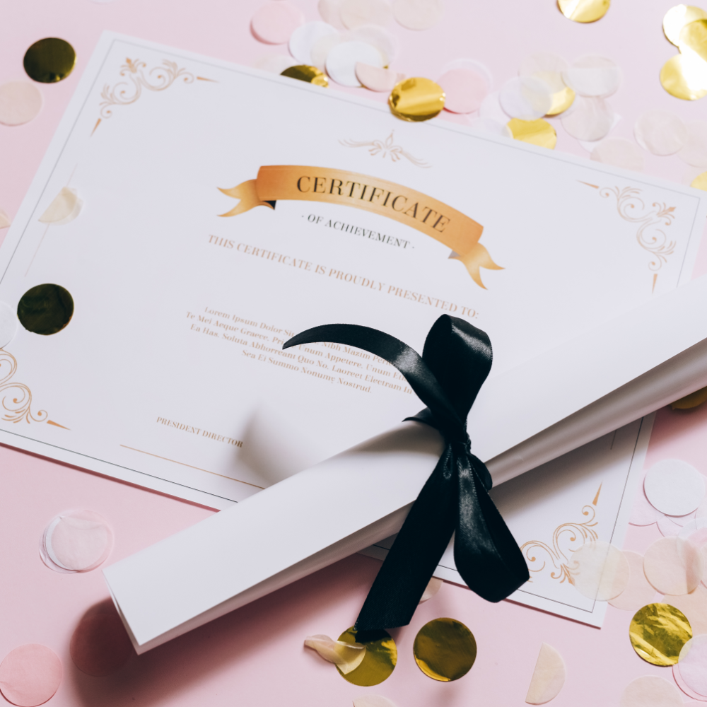 Reconhecimento pelo seu esforço e dedicação ao final do curso.